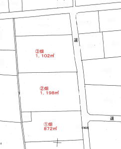 ①畑 872㎡ 白地 ②畑 1,198㎡ 青地 ③畑1,102㎡ 青地