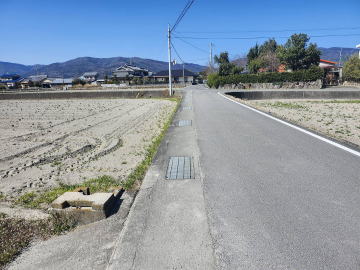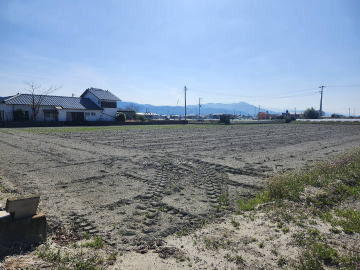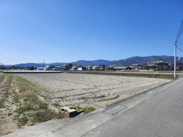 青地.工場用地、倉庫用地、資材用地など最適。分割売相談可・東道路に75㎜水道本管埋設