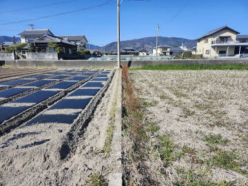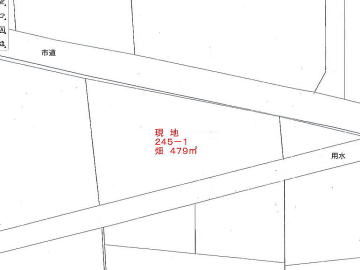 青地.住宅地など.北側市道に100㎜の水道本管埋設・市道と売地に1mの段差有り