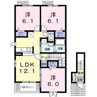 洋間6..1畳・洋間6.1畳・洋間6畳・LDK12.1畳